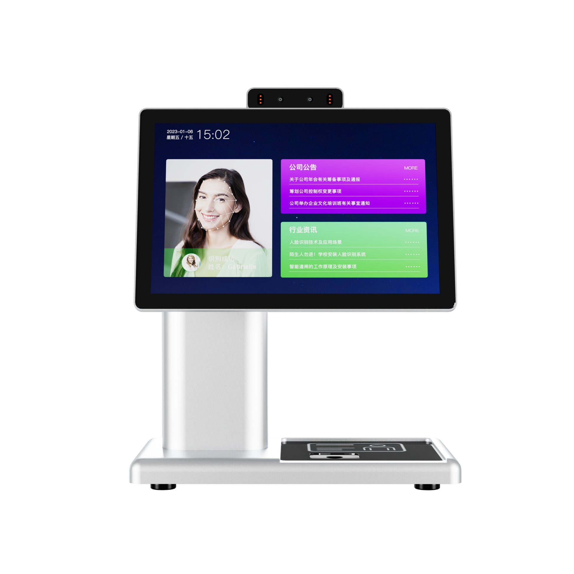 • Offre une multiplicité de modes d’identification : reconnaissance faciale, empreinte digitale, badge RFID et QR code pour un accès rapide et sécurisé.